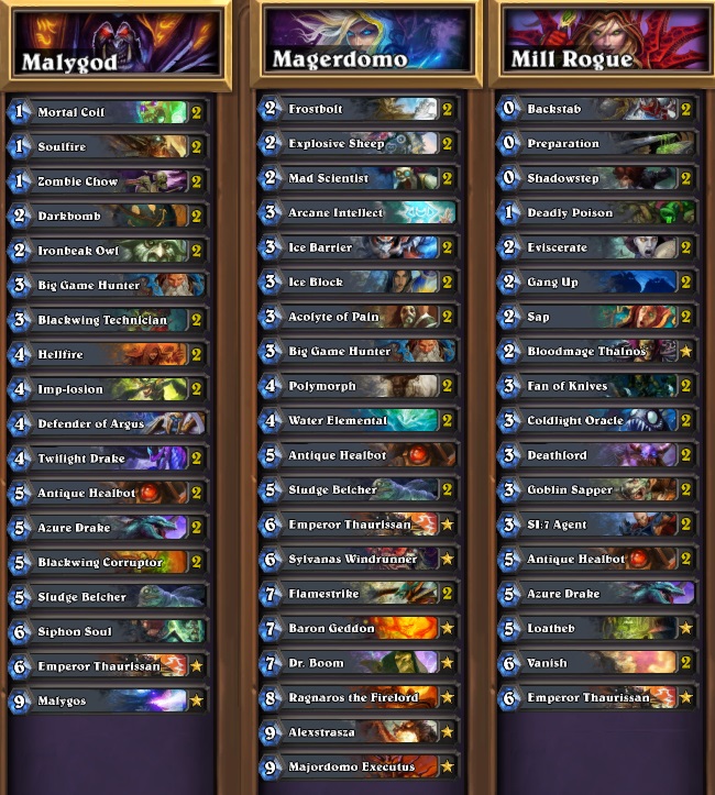 That’s partly the reason why Warlock is a class that’s expected to be in the top 3 most banned classes, that and the fact that every single one of its builds is viable and strong. What makes Warlock even more unpredictable is that Zoo and Handlock can be subtly changed to the point where one can never guess the exact list. Players like Lifecoach have displayed the power of that flexibility during the KPL, where his Handlock builds varied each week. The same is with Zoo, which iterations vary from more aggressive, ending with [card]Doomguard[/card] and [card]Loatheb[/card] to slower, Demon-based with [card]Mal'Ganis[/card] at the end of the curve.