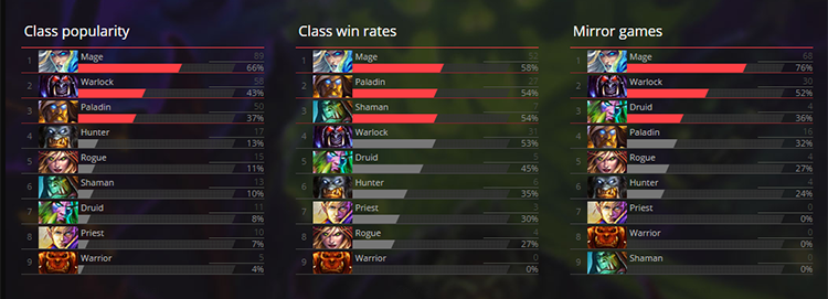 Below are the cumulative stats from both days. Yes, even though Mage was banned entirely on day two, it's still the most winning class. And here are the decklists as well.