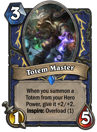 Totem Master is a 1/5 minion for 3 mana which follows the TGT Shaman theme of having lots and strong totems. Every totem summoned from the hero power comes with a +2/+2 buff but it overloads you for (1). Too strong? Perhaps, in the end this means that Shaman can get 2/4 minions infinitely but they now cost 3 spread over two turns. With this effect, you can't afford to be trigger happy on the hero power, as essentially you will always be a turn behind your opponent in terms of mana.