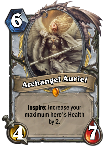 Another interesting card with a unique effect is Archangel Auriel (a bit Diablo themed, but we'll forgive the lore invasion here). A 4/7 minion for 6, Auriel does what no card currently in Hearthstone can - increase your maximum Hero health.