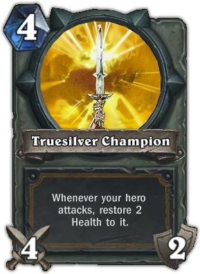 PROS: This 4-drop weapon, with its 4 damage and 2 durability, is very efficient. It can kill most early game taunts and threats, allowing your minions to attack freely, suitable for aggro Paladins. Its healing effect increases your sustainability, which is perfect for control Paladins as they setup for bigger minions and spells. Another great thing about it is that it ruins the tempo of enemy aggro decks like Hunter or Warlock. Lastly, because of all its stats, it is cost-efficient even if it is used only once.