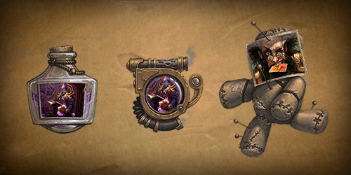 According to Ben, during the very first stages of the artistic card designs, the sky was the limit. The designs were so varied that some of them were even voodoo dolls, gear-driven contraptions, magical jars, moonwells and even papercraft minions. Even though the sky was the limit, these designs had a variety of cons and pros when judged their functionality as game pieces. Ben expands on the subject and says that as the team weighed the pros and cons, they became enriched with knowledge about what they wanted to be in the art, and what they didn't want: "We knew that we wanted it to feel like a physical object, that it should definitely feel valuable, but we also knew that the game should absolutely feel as though it belongs in the world of Azeroth." Phrases like "epically charming" and "delightful surprise" were beginning to form in their game vocabulary and soon, into the game itself.