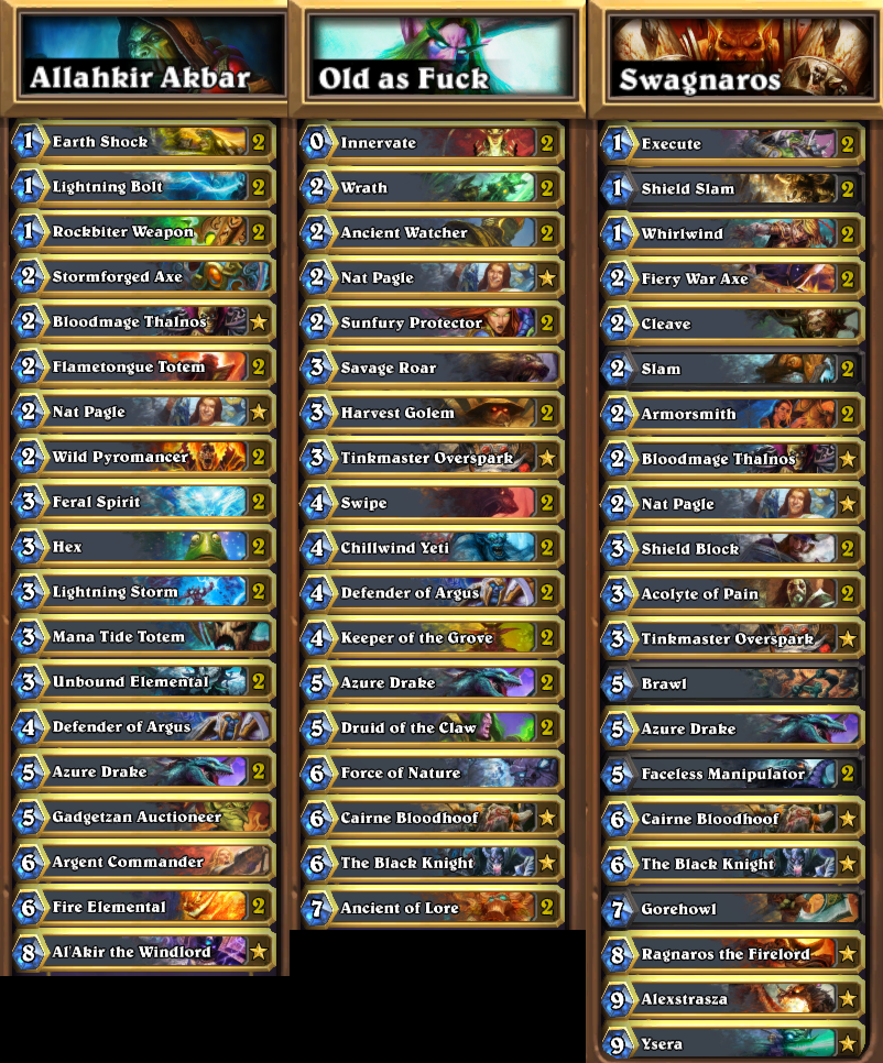 For the opening match, Ek0p went back to the deck that brought him the flawless success last week, the wittily named, all-golden "Allahkir Akbar" mid-range Shaman, a build which has been very strong for both Ek0p and DogeHouse alike in the past.