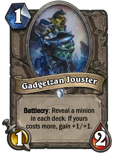 The Gadgetzan Jouster can be compared to the [card]Blackwing Technician[/card]. Only with Gadgetzan Jouster, you don’t control the +1/+1 buff. As said a few times now, it will all depend on how powerful the jousting effect turns out to be whether or not this card will see play. For now it seems better to stick to your [card]Zombie Chow[/card] as your 1 drop.