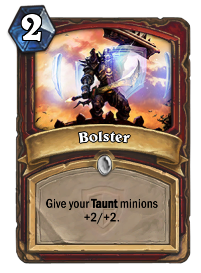 Taunt seems to be something which Blizzard wants to see more of in Warrior, and Bolster is proof of that. In the current meta, [card]Sludge Belcher[/card] is undeniably the most seen minion with Taunt. However, only Control Warriors have this card in their deck. The other minion with Taunt that sees play in Warrior decks, is the [card]Dread Corsair[/card] in Patron Warrior. Neither of these decks seem to be in need of any bigger Taunt creatures, but Bolster could change that. In combination with cards such as [card]Defender of Argus[/card], Bolster could quickly create a very strong board that is hard for your opponent to get rid off. That being said, should Bolster find its way into the meta, [card]The Black Knight[/card] will probably be very happy to show his face again as well.