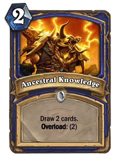 Blizzard has always had, to the community’s surprise, some sort of strange love for overload. [card]Lava Shock[/card] was their first attempt to make an overload deck more viable, and they didn’t really succeed. As stubborn as it may look, they continue to deliver cards with the overload effect. Ancestral Knowledge is, much like many overload cards, absolutely horrible. Basically you’re paying 4 mana to draw 2 cards, which is an awful lot. Unless a new card, something like “gain attack equal to your overloaded mana crystals”, will be added, this card will see no play at all.