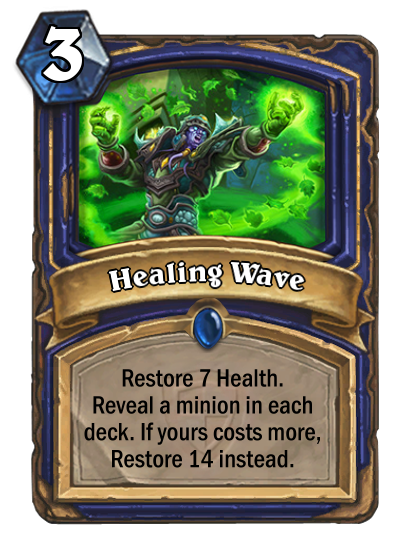 The general verdict on the so far revealed Shaman cards seems to be that [card]Tuskarr Totemic[/card] is insane, [card]Totem Golem[/card] is really good, [card]Ancestral Knowledge[/card] can fit in the right deck and [card]Thunder Bluff Valiant[/card] has a lot of potential. Only [card]Charged Hammer[/card] and Draenei Totemcarver are perceived as not very useful, so the class certainly got strong tools. Now, Healing Wave was revealed - and it seems bonkers.