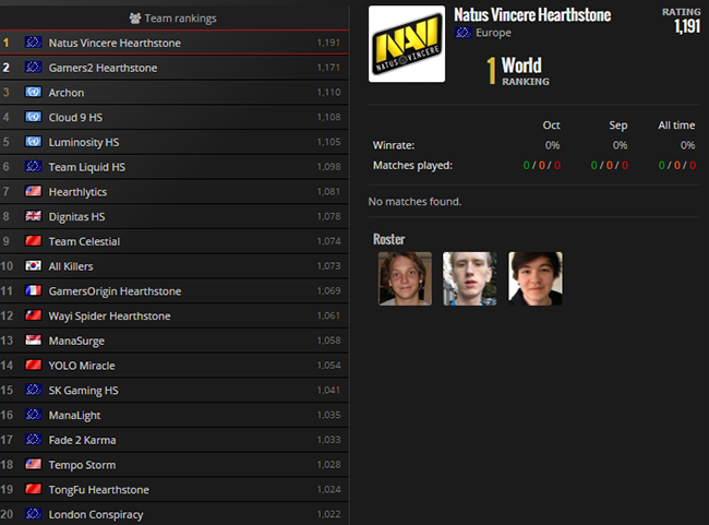 Natus Vincere are once again on the top. One week before the end of the month, the yellow jackets are leading the Hearthstone team rankings 20 points ahead of their European rivals G2.