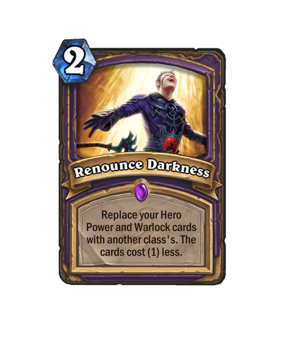 Being the third streamer to have his card revealed following the votes of the community, Forsen had the honor to present quite a crazy Warlock card today. Renounce Darkness reminds somewhat of [card]Unstable Portal[/card] in its craziness, only this goes quite a bit further. It simply seems impossible to build a deck around this card's effects, as it does not just deliver one moment of RNG: every Warlock card will be gone. Although the viability is discussable, this does seem to be one of the more fun cards in the set so far, and is certain to make an appearance or two in a compilation video of crazy Hearthstone moment.
