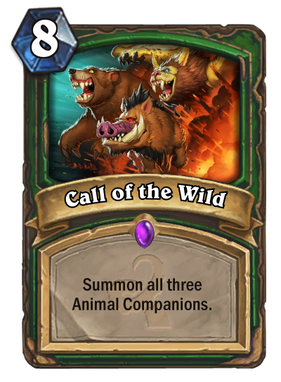 At eight mana, Call of the Wild will spawn a 2/4 which buffs all of the player's minions with +1 attack, a 5/2 with Charge and a 5/4 with Taunt (the latter two being buffed by Leokk), for a total of 12/10 stats and five damage which can be used immediately. For a mere eight Mana, that's certainly nothing to scoff at, and it seems like Blizzard is hell-bent on (finally) making Control Hunter a reality. Since all three Animal Companions are, naturally, beasts, Call of the Wild could also help trigger spells and minions which rely on beast synergy much more consistently.