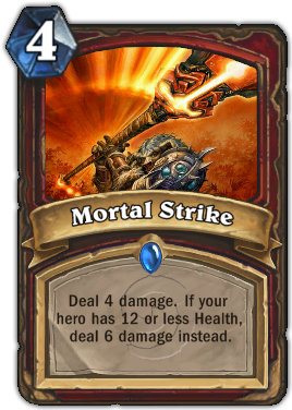 Mortal Strike is a weaker Fireball of sorts but is important for bypassing taunters. Its text will also make you decide whether you armor up or receive some additional damage: playing on low life might be dangerous but sometimes the extra damage is game-winning.