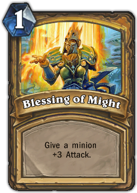 With the latter in mind, where the buff must be applied is of crucial importance and it's not always wise to invest in an already big minion. A good example would be board of one Silver Hand Recruit and a 3/4 [card]Defender of Argus[/card] with Taunt. In theory, it seems like using Blessing of Might on Defender is the better option, but if your opponent has troubles getting through the taunt (or in case of Priest, dealing with the 4 attack ), you can place it on the small dude instead and increase the chance for a re-use (if the minion hits twice, Blessing of Might has essentially dealt 6 damage for 1 mana).