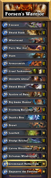 Finally, we have Sebastian "Forsen" Fors' control Warrior, ready and equipped with Garrosh's newest toy - [card]Death's Bite[/card].