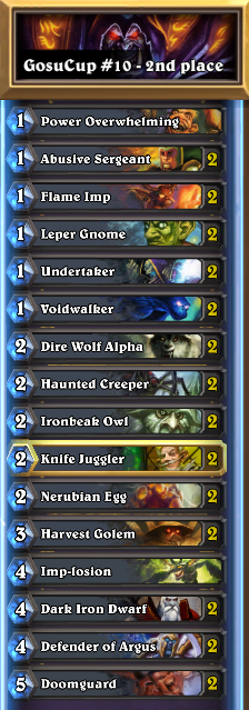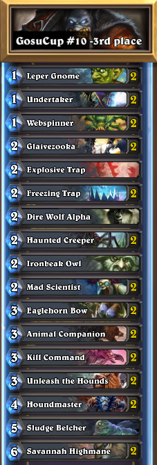 The idea of the budget cup is simple - players are allowed to build decks of any class, as long as they don't use epic and legendary cards. While this restriction could be seen as hurtful towards the metagame - in the end, it tilted the decks towards the aggro archetype as they are traditionally cheaper to assemble - it wasn't always the case. In fact, players in the past were seen using midrange, or slower, decks like Priest and Shaman to become GosuCup champions, not even resorting to what were considered the top budget dogs, i.e. Hunters and Zoos.