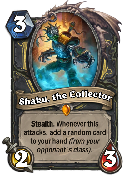 In addition, two more legendaries were leaked a day ago featuring Shaku, the Collector for Rogue, a Stealthy version of [card]undercity huckster[/card] and Auctionmaster Beardo, a slow, hero power refresher that could potentially be considered for future fatigue decks.