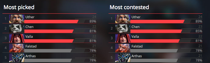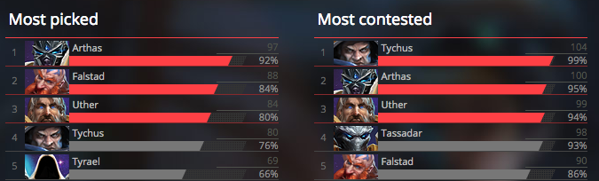 As you can see, Arthas, Falstad, Uther and Tychus were among the most picked and contested heroes in the game, and for good reason. Old Arthas did more damage on all of his abilities, had a Rune Tap talent that healed for a whopping 6% Hp every third strike, and still he had access to Envenom. All of this made him one of the tankiest warriors with the surprisingly high burst damage.