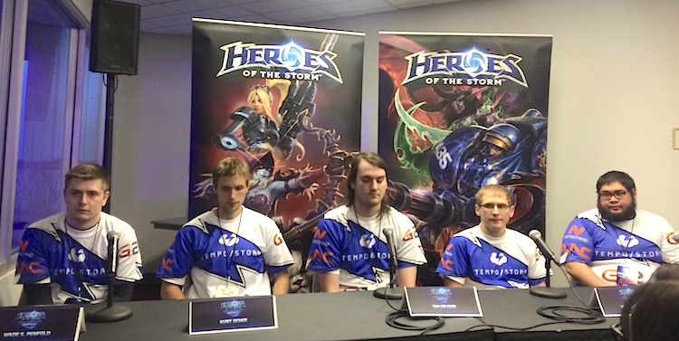 Tempo Storm was comfortable walking into the media room; you could tell they have been through these type of interviews before. They recognized a lot of us media types in the room, and seemed to enjoy the name tags. "It's because we still don't know who you are by now" someone in the crowd joked. This was followed by a series of "Hello? Team?" jokes, some marveling at the stage outside of this press box, and a discussion on if Tempo Storm's pull could secure Heroes of the Storm water bottles for the rest of us. After everyone took their seat, the interview started:
