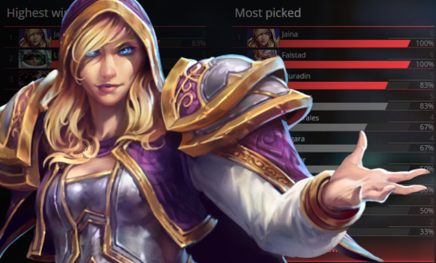 1.) The first major thing that stands out in North America is the two most picked heroes, both picked 100% of the time, are Jaina and Falstad. Jaina is an all around solid damage dealer and is almost never a bad pick. It could very easily be argued that there are better assassins than Jaina, but North America tends to disagree. Falstad offers a huge amount of mobility and can also put up some serious damage, so it makes sense that in North America he would be a top pick.