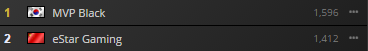 eStar Gaming is considered a top-tier Chinese team, and their performance reflects that. In fact, the only losses they've had recently, and really their only series' that weren't a complete stomp were against MVP Black. If they are able to topple MVP Black in Sweden, there's no doubt their rating will shoot up.
