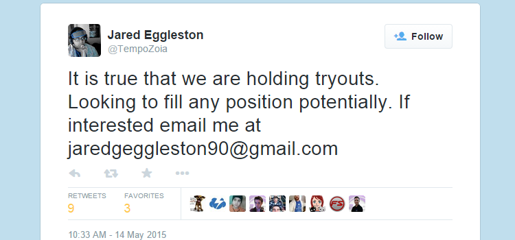 Tempo Storm's Zoia announced on twitter that they are currently holding tryouts for an open position on their roster.