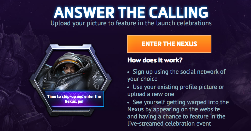 Using either Facebook, Google or Twitter, Blizzard invites you to upload a picture of yourself to be used in the celebration as a part of a currently undisclosed feature, presumably as some sort of community collage.
