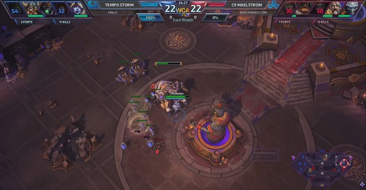 Maelstrom played an unconventional lineup with Tychus and Falstead while Tempo Storm stuck to the meta of Kael’thas and Jaina (Lost Vikings and Sylvanas were banned). Tempo Storm followed the same game plan as Game 2 by spreading the map and stressing experience gain over team fights. While Maelstrom grouped together and tried to gank,Tempo Storm had Brightwing or Kael’thas in seemingly each unoccupied lanes.