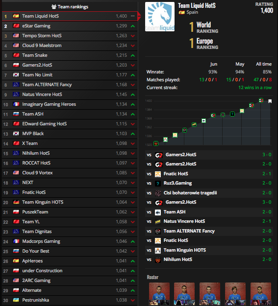 What more is there to say about Team Liquids current hold over EU Heroes of the Storm? Having just recently won Dreamhack all-stars in resounding fashion, it's clear that their #1 standing is no fluke. They are simply the most experienced and flexible Heroes team to date: their roster of eSports veterans come to every tournament calm, collected, and ready to adapt on the fly to whatever is thrown their way. Currently on a 12 match winning streak, it doesn't look like Team Liquid has any known rivals at the moment.