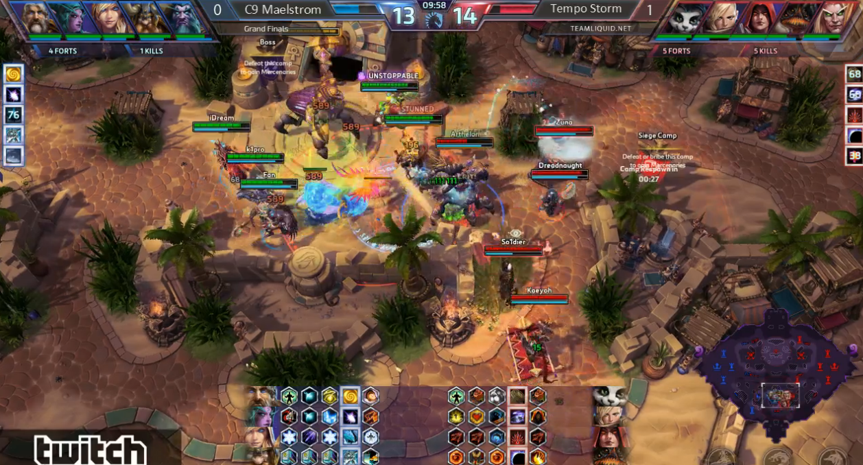 During one point of the game, when Tempo Storm was level 19 and Cloud 9 Maelstrom was 15, it was hard to take Zoia (who was casting along side of SolidJakeGG) seriously after he said a comeback might be possible, despite Cloud 9 Maelstrom being down all 3 forts and all 3 keeps at the 16 minute mark. Tempo Storm didn't lose a single fort.