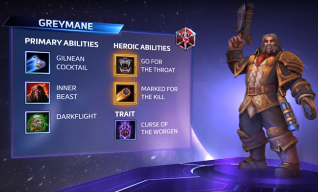 - Inner Beast. This. Ability. Is. Nuts. It’s an attack speed steroid on a relatively low cooldown that can be extended with basic attacks. A talent at level one also increases the duration/the amount it is extended by on basic attacks. Good Greymane players will be able to keep this up all throughout a fight, and combined with his powerful flexibility with auto attacks, Inner Beast will increase a Greymane’s damage output significantly.