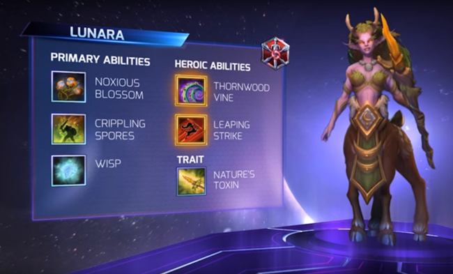 - Vision. The wisp is unlike any ability thus far in HotS, allowing Lunara to quickly scout out an objective, or allowing Lunara to keep an area under vision for extended periods of time. This also makes her laning phase that much more potent. Want to gank a Lunara? Good luck.