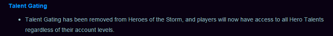 The latest Heroes of the Storm patch is somewhat small, but it brings with it several quality of life improvements for new and old players alike. Among the changes are the long awaited removal of talent gating. Gone are the days of being forced to take talents you would otherwise not want just because you're new with a hero.