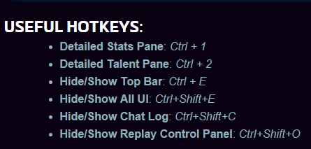 Along with these instructions, Blizzard has also given us a list of hotkeys that we may find useful. Particularly interesting is the ability to hide the replay UI, a feature that was previously unavailable. This should make the lives of content creators all over easier, as the replay bar was very intrusive before.