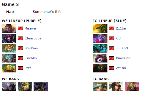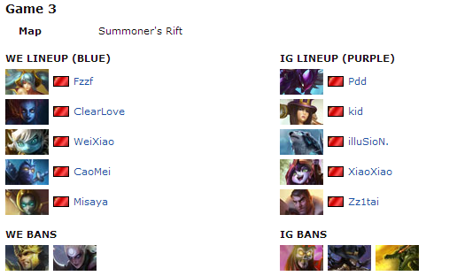 By some miracle, Misaya was able to grab his Trademarked Twisted Fate this game, a very risky move by Inivictus Gaming in a potential game point for them. Invictus Gaming's bottom lane shows strong play by forcing Weixiao out of lane and forcing him to blow a summoner's heal until World Elite used extremely clever tactics. Weixiao ran up, flashed over the wall into river, and secured a first blood onto XiaoXiao. However, Kid remained very far ahead in farm. Although one would consider Misaya easily taking the spotlight in this scenario, it instead Weixiao once again with his Tristana making place with the assistance of Fzzf and ClearLove.