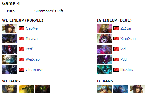 World Elite looks to conclude the series once and for all by abusing their rich Shen, however, it leaves a wide open door for a pincer attack with Malphite teleporting to a nearby ward and devestating Weixiao and Fzzf. Fzzf later departs in the aftermath of the teamfight attempting to split push an inhibitor in the bottom lane, but fails to do so with the "support wars" going on against Sona. Meanwhile, with 3 down and one in the wrong part of the map, Invictus Gaming rush down middle, ripping World Elite's nexus turrets to shreds tower by tower, and narrowly manages to secure a 3-2 victory in a fantastic series!