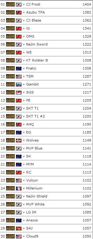 GosuRankings work very similary to your typical 'MMR' or 'Elo' system. We've recorded pretty much every match since the start of the Season 2 World Championships into our GosuBet system and the results of the game progress the teams upwards or downards based on results. Like in a ladder, a team will gain more elo defeating a stronger team and lose more elo if defeated at the hands of a weaker team. Something also taken into consideration of the algorithms is the importance of the events. For an exxagerated example, if Team FXOpen were to theoretically defeat World Elite in the World Championships, they'd gain a lot more than if they were to defeat them in a Go4LoL Qualifier. If you wish to look at the full rankings and see how teams have fluctuated within the system and who they've won or lost against to gain their points, feel free to visit the LoL rankings page. With that said, here are some interesting facts to look at in accordance to the way teams have shifted around since January.