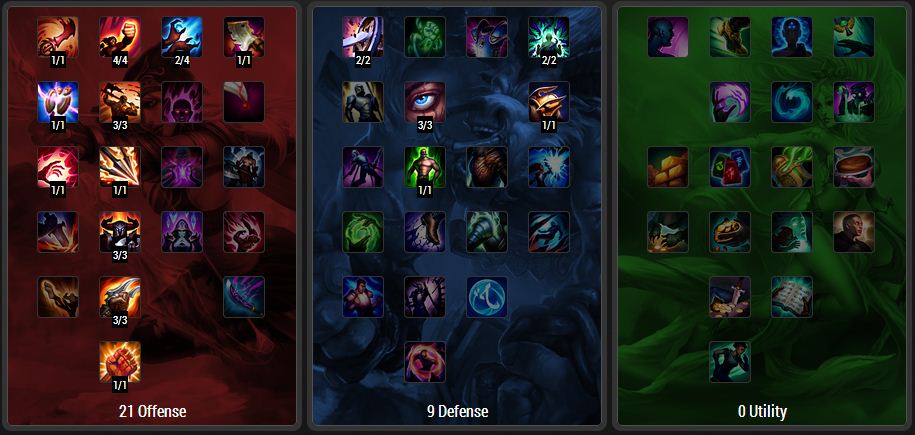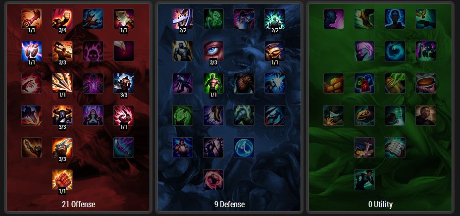 The mastery page is focused on offense. Your game is all about ganking immediately after your first clear, so you should pack as much punch as possible. Executioner and Dangerous Game can be swapped for Sorcery.