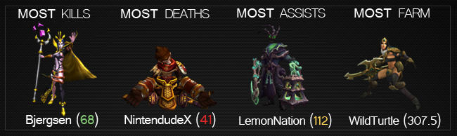 LemonNation continues to be the king of assist, totally a whopping 112 climbing up from 89 last week. LemonNation also happens to be surpassing YellOwStaR who is the king in Europe. The farming master goes to Wildturtle this week, although still behind Chauster who had 319 last week and far behind CandyPanda, who sat at an incredible 389.