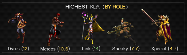 WildTurtle and KiWiKiD have been toppled by two new bottom laners as well. Sneaky managed to narrowly pass up Wildturtle's KDA by climbing to 7.7 while KiWiKiD's KDA dropped enough to where Xpecial was able to take over with a KDA of 4.7.