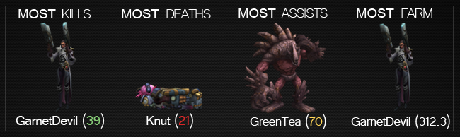 With an hard-fought win by ahq over IPT, GarnetDevil maintains the Most Kills position, adding 13 more to his previous score in Week 1. Not only that, but he also managed to land another top spot, this time in Most Farm with 312, overtaking TPS' OhReal. His partner, GreenTea, also maintains the Most Assists record, adding an astonding 39 more to last week's,making the bot lane duo look more and more formidable.