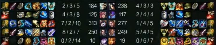 Royal Club took lessons from KT Rolster in this game and counterpicked Shen into Renekton while Kmi chose his favorite, currently out-of-meta champion pick of Jarvan IV. In a straight up 2v2, Namei and Fzzf managed to outplay LeY and grab first blood on Vayne in what is supposed to be a nightmare matchup against Caitlyn. Despite counterpicking, Koro1 was able to shove up early and dominate Nct in the top lane.