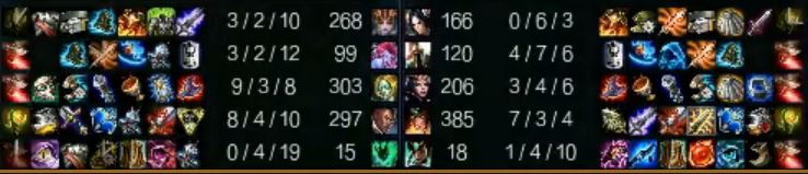 Star attempted to use Irelia, as his strong point is typically damage dealing top laners, but it was not going so hot for him in this game. Not only was he relentlessly capped, but he suffered a horrible farm deficiency as well. Illusions heavy kill participation allowed for his team to come out ahead in many fights.