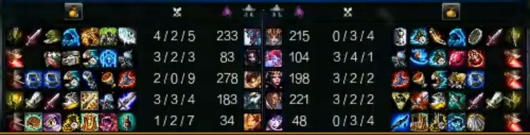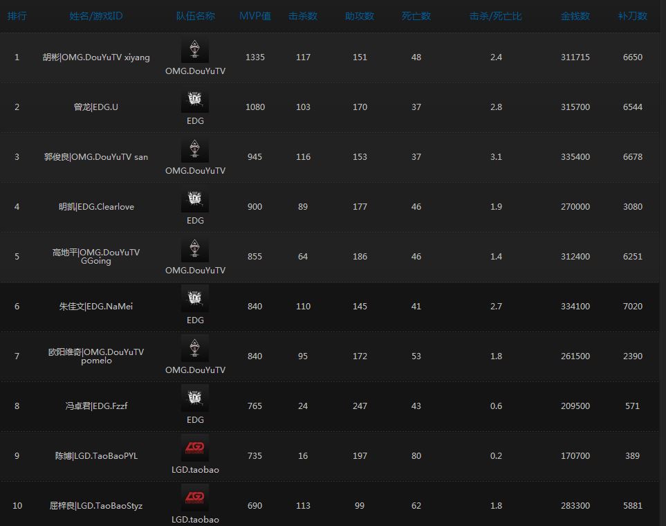 MVP Score / Kills / Assists / Deaths / KDA / Gold / CS