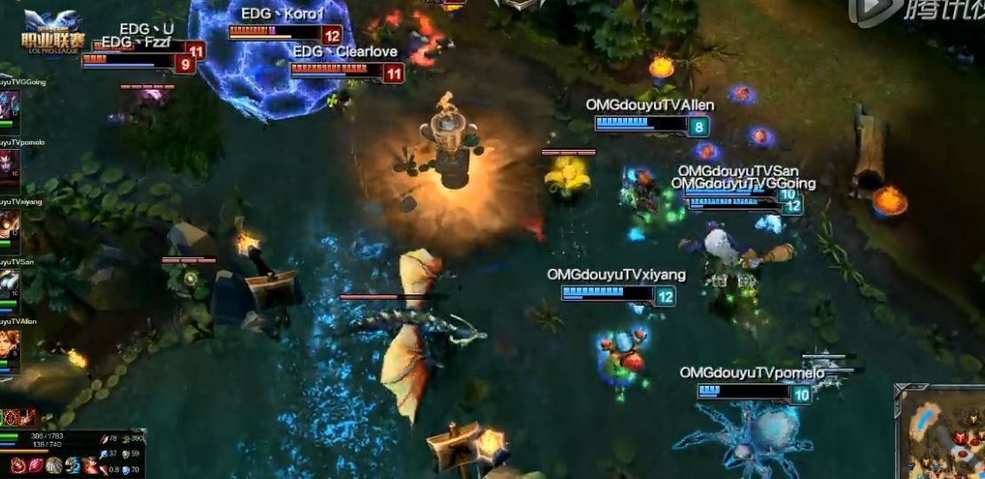 The top two teams in China would open the 8th week of LPL with OMG facing off against EDG. OMG decided to give EDG a taste of their own medicine in the bottom lane with San picking up Twitch against NaMei. Since Koro was able to pick Ryze, OMG laneswapped in attempt to shut him down early. EDG cleverly just sent four bottom to push the outer turrets in response.
