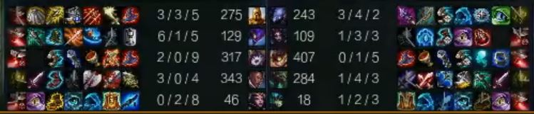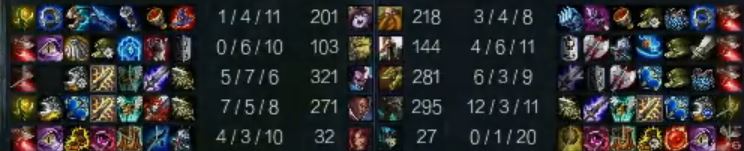 - Lots of bottom lane focus in this game, teleports from both teams burned early to secure first dragon control. Mid and top ended up as empty lanes around 10 minutes in.
