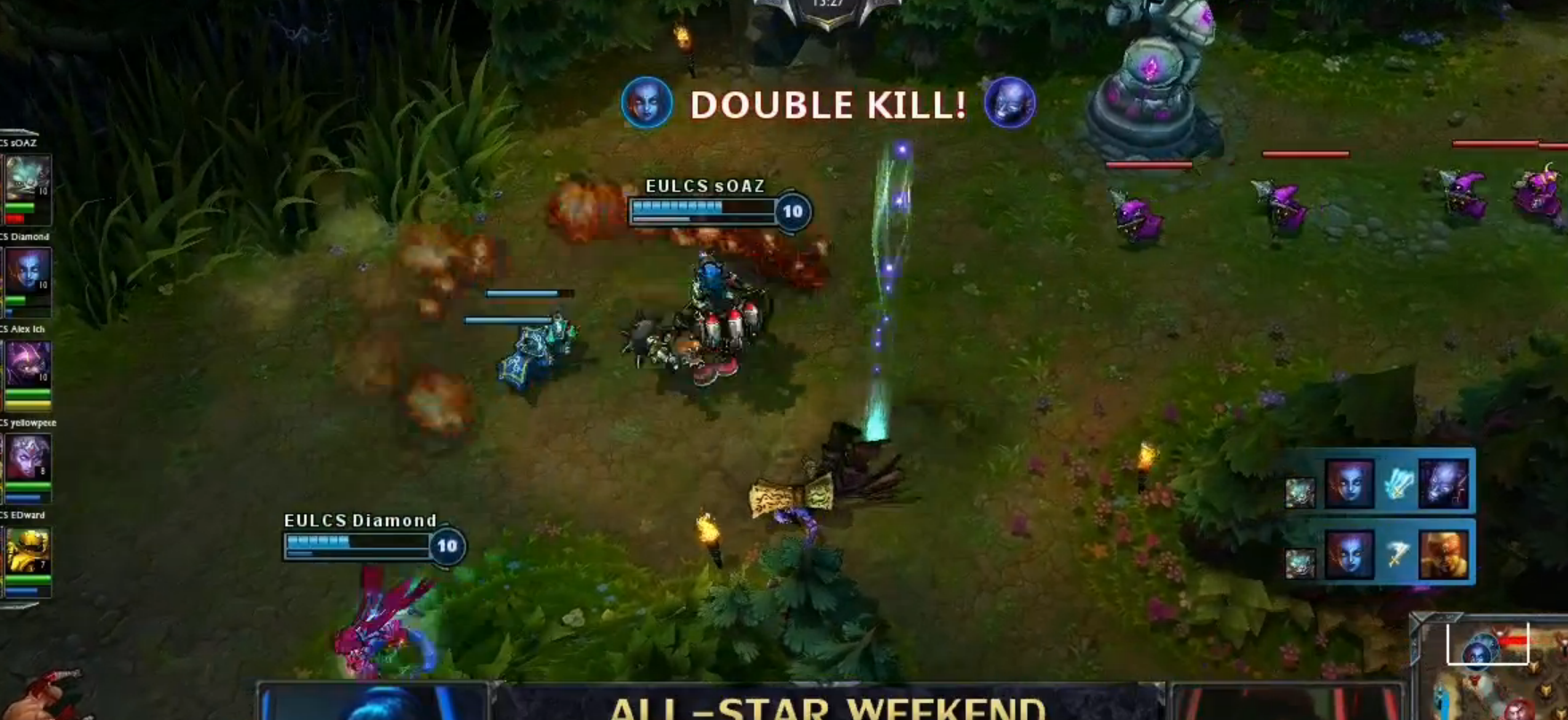 Game 1 would be an excellent showcase from Diamondprox, proving just how powerful his unconventional Eve jungle is, transitioning from Spirit of the Elder Lizard into an AP build. Yellowpete also landed his favorite AD, but was going to show Diamondprox just how powerful Lee Sin still was. In the beginning of the game, The European All-Stars found it difficult to do well in lane against the OGN All-Stars.