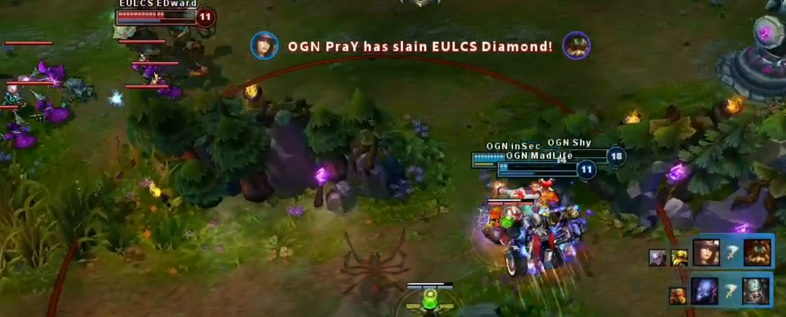 Though EU held the momentum for a little awhile and had some excellent ganks, InSec spotted out Diamondprox's every move, countering it along with Shy with some awesome counter-engages which would put even the most formidable plans from EU down the drain.