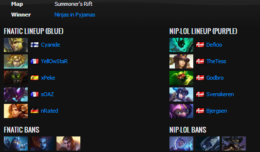 ?It was the 0-4 team facing off against the 1st place team of the last split for the start of the final day at Dreamhack, which was hosting the European LCS. For the first time all weekend, NiP was able to outfarm and outplay their opponents individually in lane and bring the pain to Fnatic, applying pressure at every given point.