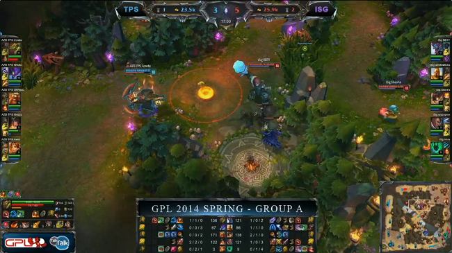 The Titans initiated the first lane swap of 2014 GPL Spring by sending Lloyd and SKLz to the top lane against Prydz. There, ahq picked up first blood, but Lloyd picked up the double buffs with a kill on Naz. an engage in the bottom lane gave GarnetDevil a double kill and the first turret, and ahq were able to take the first dragon off his success.