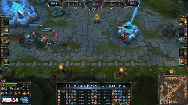 The game didn't start to really turn until a fight over the first tier mid lane turret broke out. A strong initiate by SGS' BenW and DDan got the first two kills, but SofM's agile use of Lee Sin, and the AoE control Starfall gave NFL turned the fight and picked up the turret.