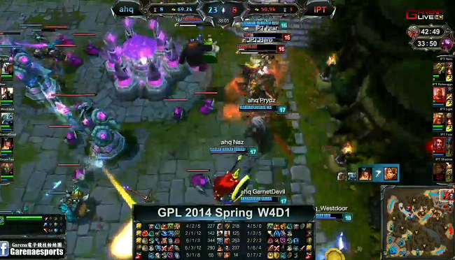 However, things went south soon for IPT as ahq bounced back and outmaneuvered its opponents once again. Westdoor, Garnetdevil, and even GreenTea on support Malphite snowballed hard into the mid game. Even though Light got a good baron steal, their teamfight coordination was left to be desired, as missed ults and mispositioning cost them crucial skirmishes, eventually leading to another big loss.